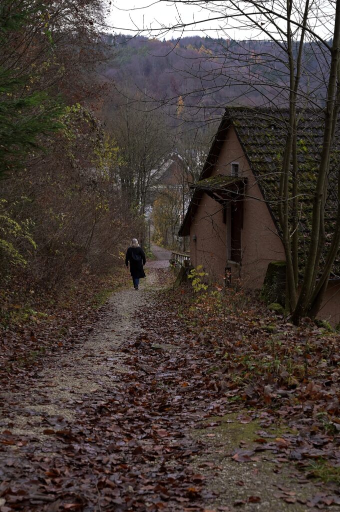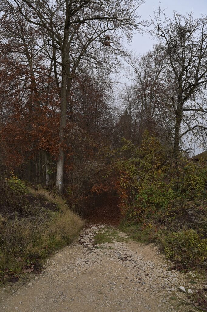 Ein Besuch profan mit den Auto – von Tür zu Tür – erschien mir (wie so oft) unpassend. Einer solchen Stätte wollte ich mich topographisch annähern. Vom Ingolstädter Nordbahnhof ging es deshalb gemütlich über sieben Haltestellen in 35 Minuten nach Solnhofen. Dort angekommen, spazierte ich geradewegs über den Mühlweg bergauf in den Wald und darin durchgehend in einem groben Halbkreis zum Ziel. Das Ganze benötigt eine gute halbe Stunde. Über Esslingen zurück ins Tal kann man entlang der Felsgruppe „Zwölf Apostel“ nach Solnhofen wandern.