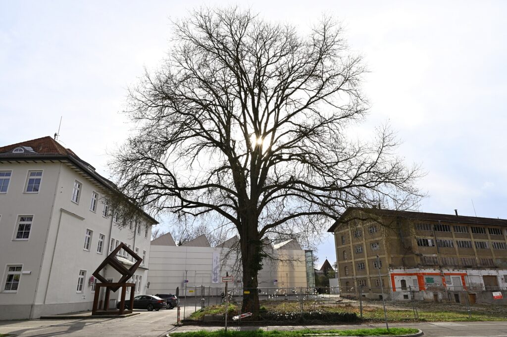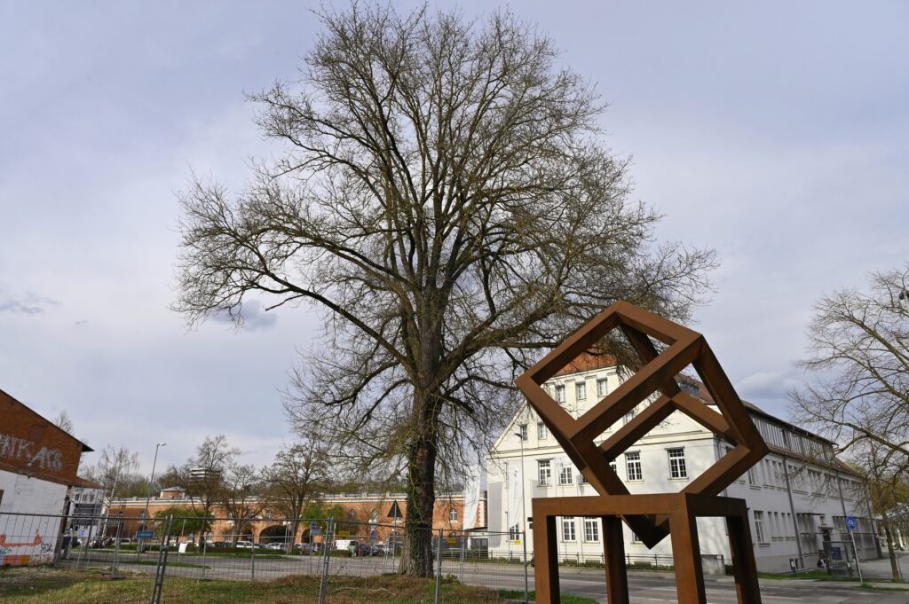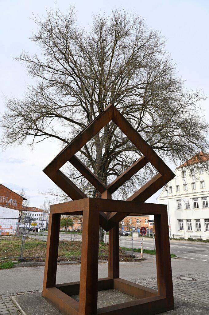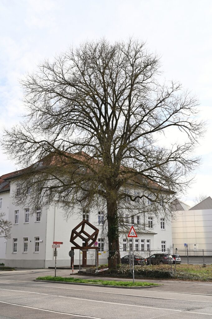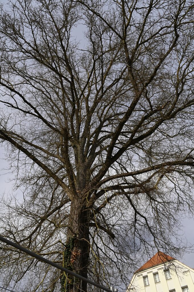 Gegenüber der Technischen Hochschule Ingolstadt, zwischen Lechner Museum (die zwei Eisenwürfel deuten es an) und Körnermagazin, steht eine imposante Feld-Ulme. Genau hier: schale.handtuch.schlaf. Am 05. April 2025 habe ich sie (der man die Nummer 39 gegeben hat) für diese Notiz eingefangen. In der Liste der Ingolstädter Naturdenkmäler gibt es nur diese zwei weiteren Exemplare der Art.
