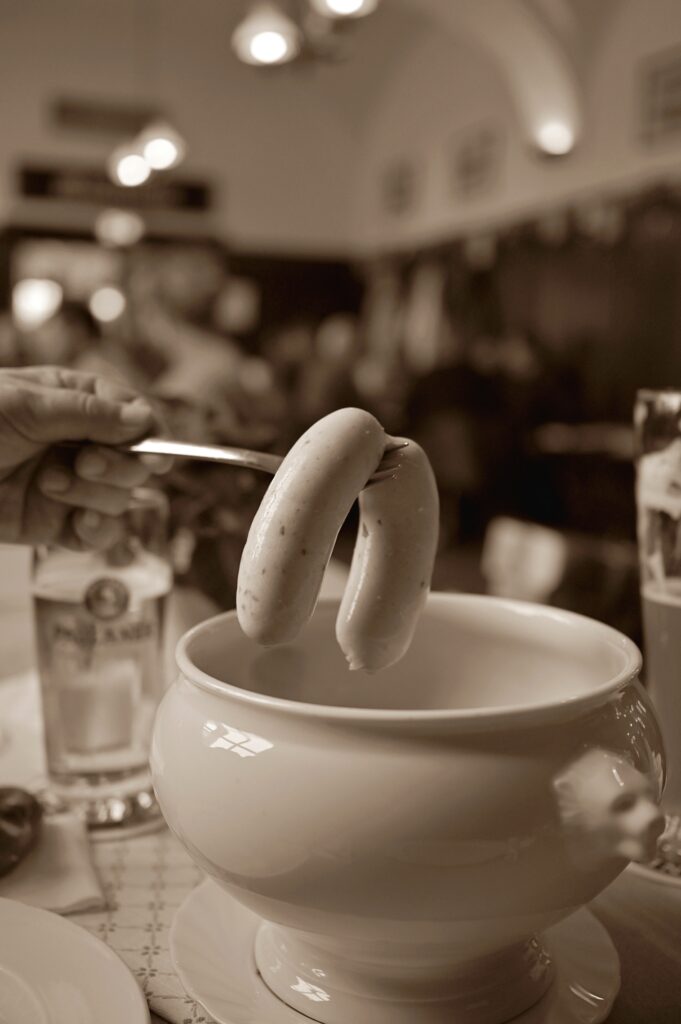 Seit Wochen ist ein Tisch für den 29.12.2025 reserviert. Für acht Personen. In der besonderen Zeit zwischen den Jahren, die ich sehr schätze. Vorfreude. Finale! Die Rechnung mit dem Wirt ist also gemacht … aber nicht mit der Influenza. Was für ein Schiffbruch … und ich bin zur Stunde immer noch auf hoher See. Nachdenken. Ich habe gerade viel Zeit dafür. Ein Nachholtermin im Januar 2026? Ich wollte doch die ein oder andere Bedienung noch richtig porträtieren. Und dann schwebt mir seit Monaten noch ein spezielles Bild mit Ludwig Wallner und in seinem Fall natürlich Weißwürsten vor. Dem französische Fotograph Robert Doisneau gelang 1952 ein Foto mit Picasso, das mir schon immer gefiel. „Les Pains de Picasso“ – der Maler sitzt am Esstisch, acht seiner Finger scheinen aus Brot zu bestehen …