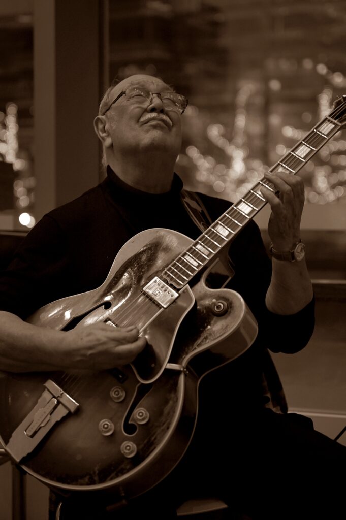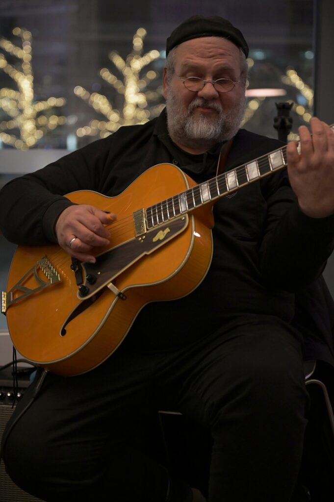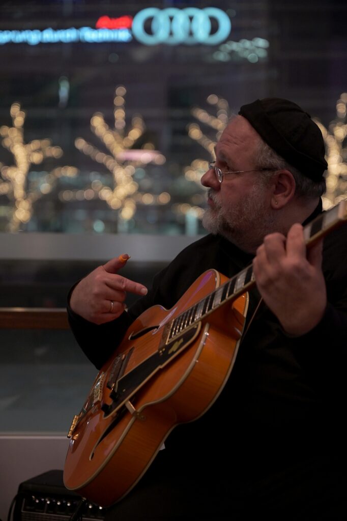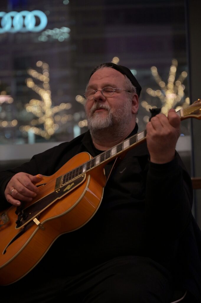 Meine letzten Klänge im alten Jahr in der After Work Jazz Lounge gönnte ich mir am 04.12.2025. Es war ein wirklich außerordentlich gelungener Feierabend, den mir da die beiden Gitarristen Joe Bawelino (München) und Gige Brunner (Nürnberg) bereiteten. Der in sich ruhende Franke legte gekonnt einen beswingten Klangteppich aus, der die ganze Szenerie stetig durchflutete. Darauf bewegte sich der Münchner gefühlstief mit Grandezza. Als Ohrenzeuge war man da durchwegs auf der sicheren, genussvollen Seite. Danke dafür! Auch für die kurzweiligen Gespräche …