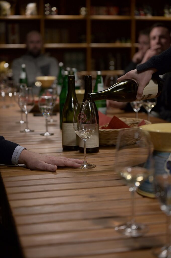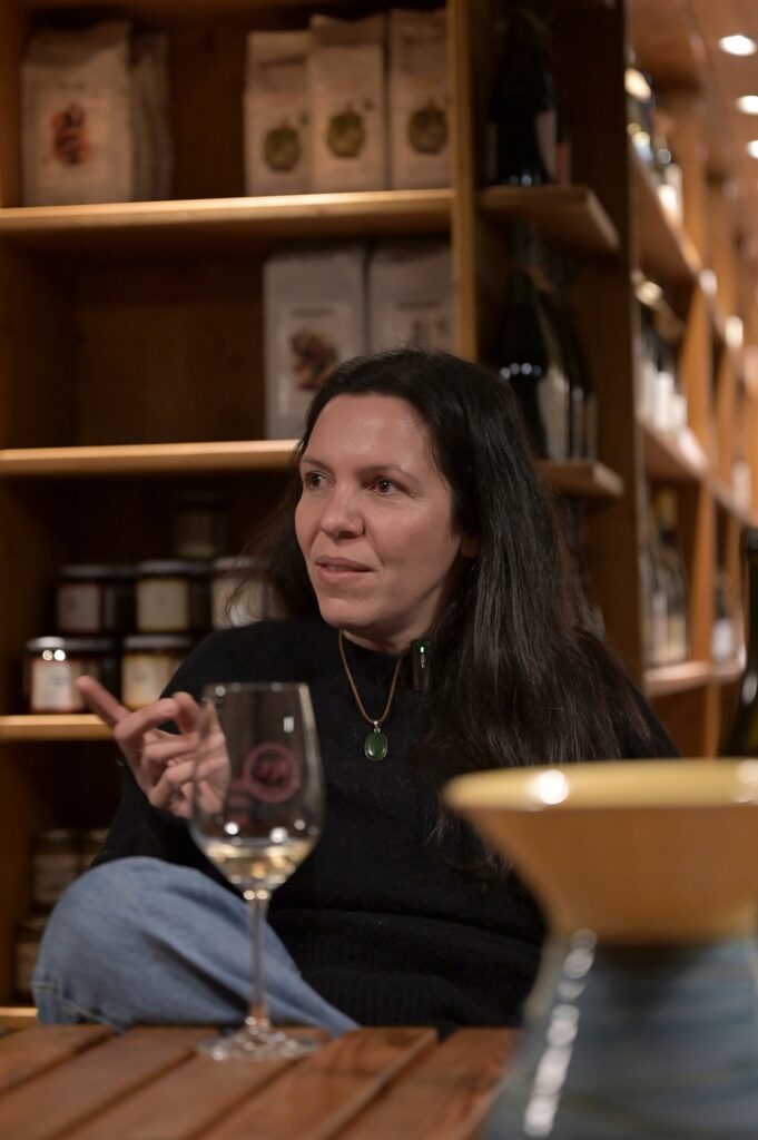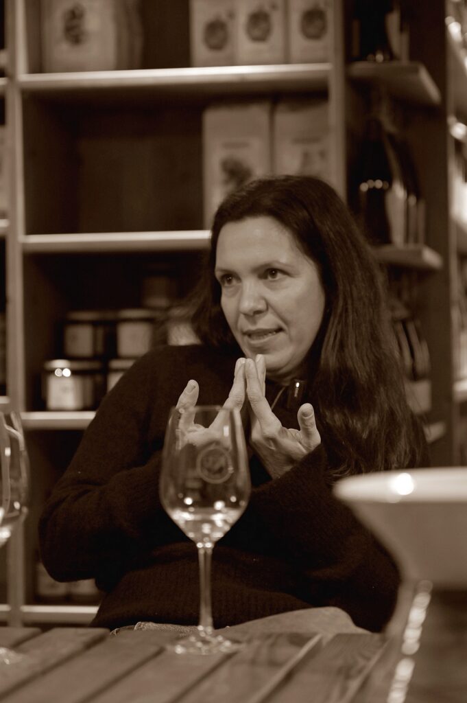 Auf (nur) 3 Hektar reift bei ihr in 16 kleinteiligen biodynamisch bewirtschafteten Parzellen vitaler Traubensaft, aus dem am Ende vier verschiedene spontanvergorene (Natur)weine entstehen. Der Village Village Rosé (Portugieser|Dornfelder|Frühburgunder) – der mir nicht so liegt, der gute Riesling Kirchenpeace (saftig, vielschichtig ohne dominate Säure), der sehr gute (kühl, mineralisch) Village Village Blanc (Sylvaner|Riesling|Traminer) und der spektakuläre Sylvaner Kalkoven (Druck, Leben, Salz).