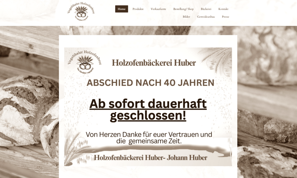 Die Öfen gehen leider weiter aus. Letztes Jahr an Weihnachten in der Bäckerei Sengl. Jetzt am Ostersamstag in der Holzofenbäckerei Huber (Vogelthaler Holzofenbrot). Im Donaukurier werden „hohe Auflagen und akuter Personalmangel“ als Hauptgründe dafür genannt. Wieder ein ausgezeichneter Bäcker weniger. Handwerkliches Brotbacken scheitert an Bürokratie und fehlender Arbeitskraft … man denke darüber mal ein bisserl nach …