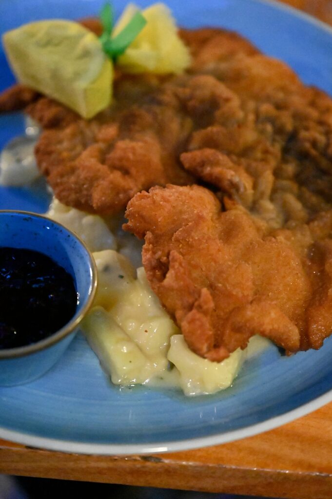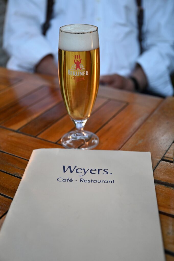 Auf der Hinfahrt besuchten wir das solide Restaurant im Hotel zum Stein in Sachsen-Anhalt. Es steht im Slow Food Genussführer. Ein wichtiges Werkzeug auf Reisen. Gleich daneben grenzt das Gartenreich Dessau-Wörlitz – ein Weltkulturerbe der UNESCO. Wir erwischten es noch zur Blauen Stunde. Im Weyers (Charlottenburg) gibt es ein gutes Wiener Schnitzel mit lauwarmen Kartoffelsalat.