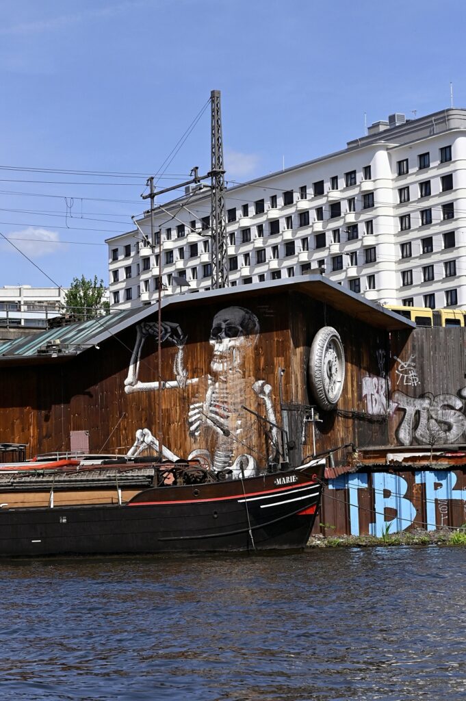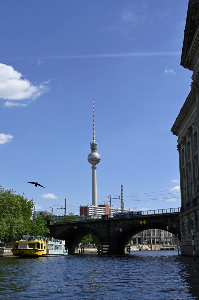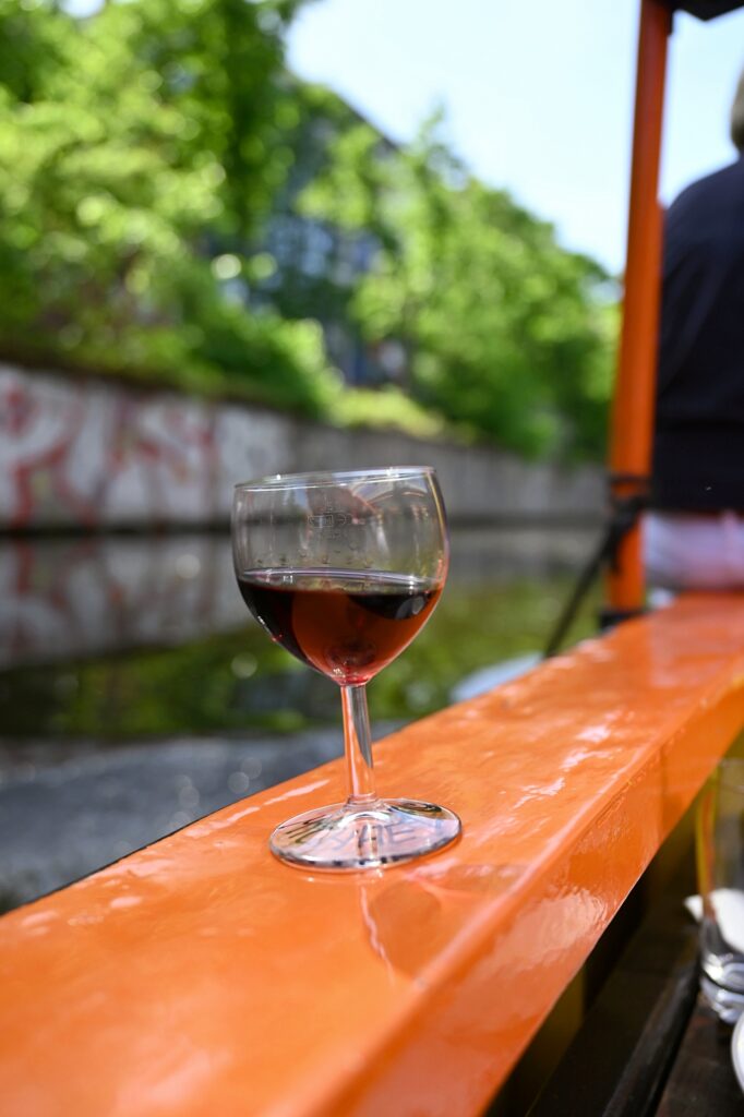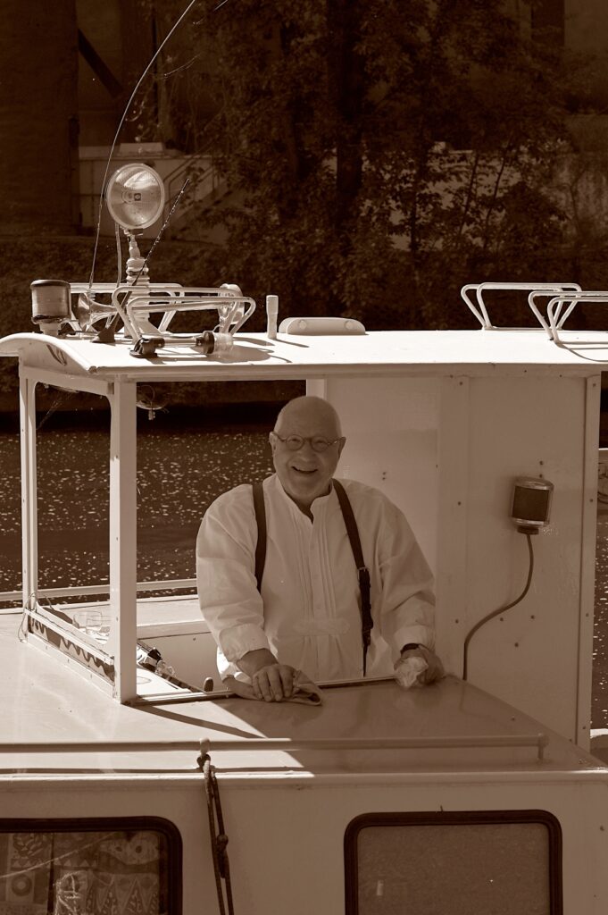 Am 1. Mai kann man – zumal in Berlin – jegliche Manieren vermissen lassen. Das muss nicht sein. Ich erlebte den Maianfang im letzten Jahr – in Berlin – als den wohl schönsten, den ich bisher hatte. Und stilsicher war er auch. Zu verdanken habe ich das Bernd. Ein wunderbarer Mensch! Vor langer Zeit kaufte er sich eine Hamburger Hafenbarkasse – den „Leierkasten“. Dessen Revier sind seither die über 240 km Wasserwege der Hauptstadt. Bernd ist mit ihm aber auch schon von Berlin nach Paris getuckert. Ein regelmäßiges Besatzungsmitglied des Leierkastens – in Ingolstadt vor Anker – schleuste mich an Bord, zum Antuckern im Mai. Eine Stadt gemütlich vom Wasser aus zu betrachten ist ein zauberhaftes Schauspiel. Die verschiedensten Kulissen und Stimmungen – Berlin! – ziehen vorbei, gehen langsamen ineinander über, neue Blickwinkel zuhauf. Beim Wetter war allet in Budda, an Deck wurde gestaunt, getafelt und getanzt. Zum Publikumsliebling im Glas gelangte der Doppler vom Blauen Portugieser (Weingut Hindler).