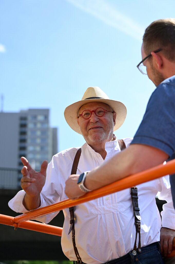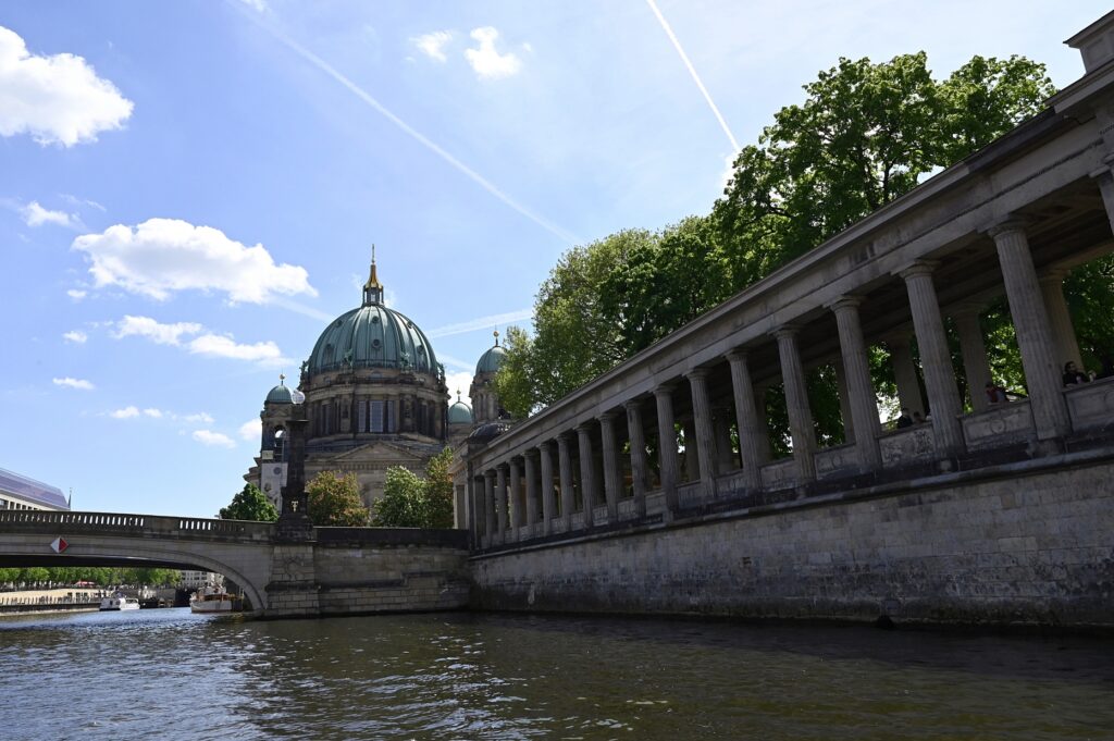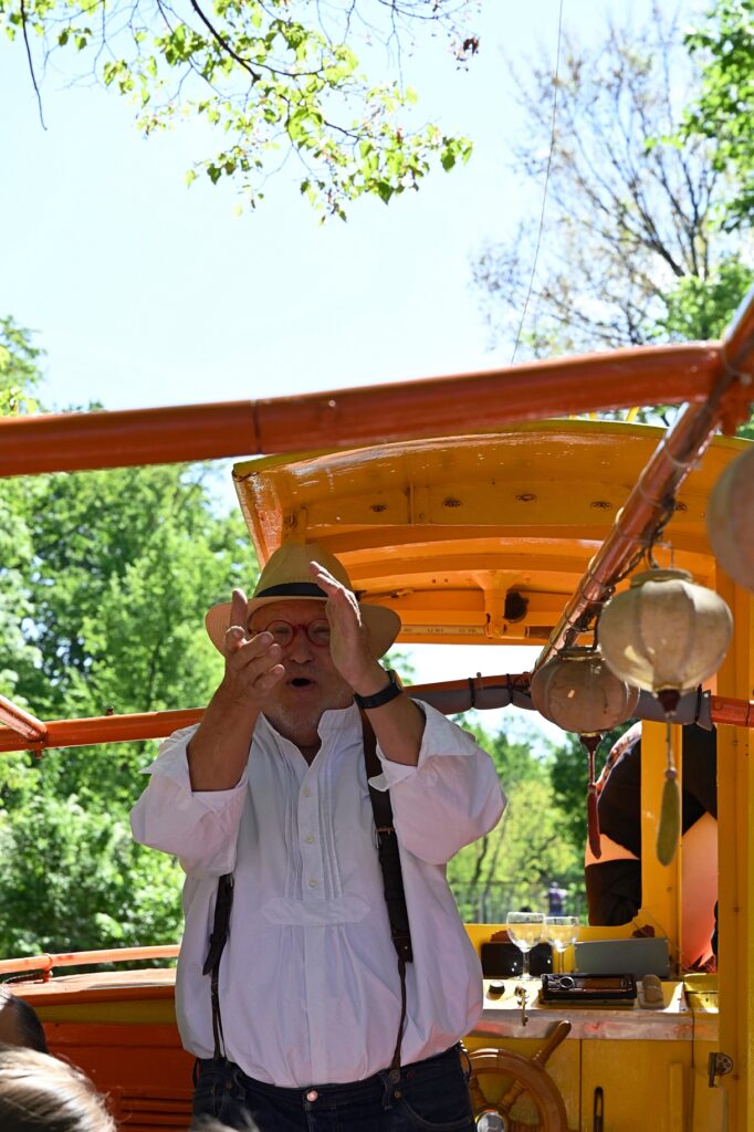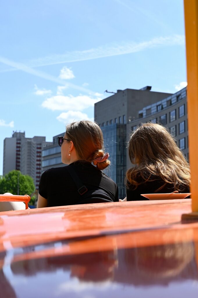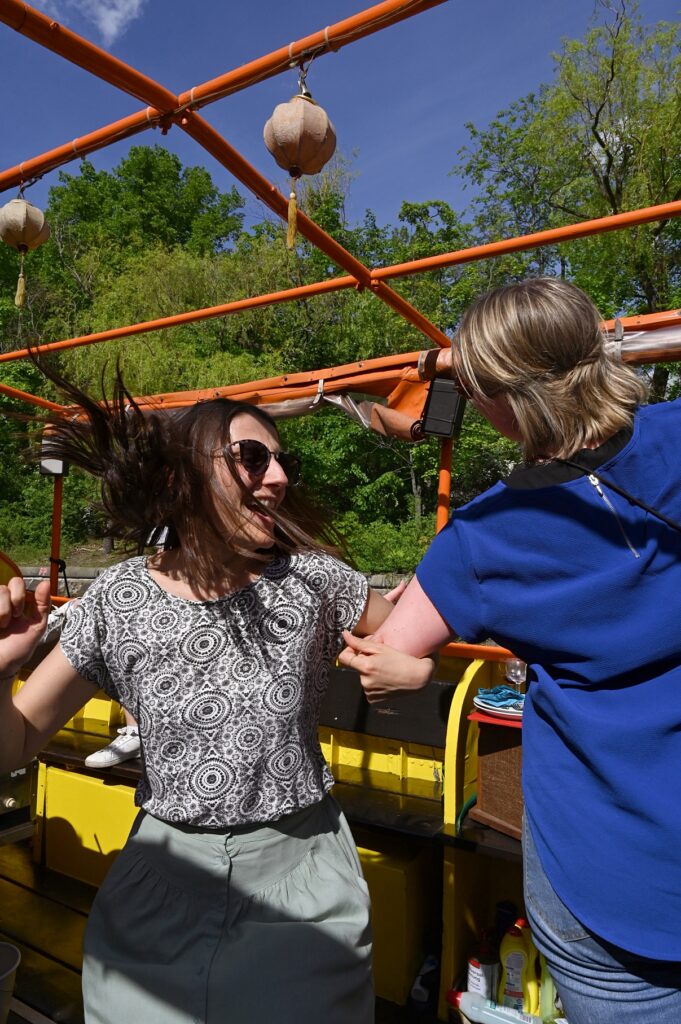 Am 1. Mai kann man – zumal in Berlin – jegliche Manieren vermissen lassen. Das muss nicht sein. Ich erlebte den Maianfang im letzten Jahr – in Berlin – als den wohl schönsten, den ich bisher hatte. Und stilsicher war er auch. Zu verdanken habe ich das Bernd. Ein wunderbarer Mensch! Vor langer Zeit kaufte er sich eine Hamburger Hafenbarkasse – den „Leierkasten“. Dessen Revier sind seither die über 240 km Wasserwege der Hauptstadt. Bernd ist mit ihm aber auch schon von Berlin nach Paris getuckert. Ein regelmäßiges Besatzungsmitglied des Leierkastens – in Ingolstadt vor Anker – schleuste mich an Bord, zum Antuckern im Mai. Eine Stadt gemütlich vom Wasser aus zu betrachten ist ein zauberhaftes Schauspiel. Die verschiedensten Kulissen und Stimmungen – Berlin! – ziehen vorbei, gehen langsamen ineinander über, neue Blickwinkel zuhauf. Beim Wetter war allet in Budda, an Deck wurde gestaunt, getafelt und getanzt. Zum Publikumsliebling im Glas gelangte der Doppler vom Blauen Portugieser (Weingut Hindler).