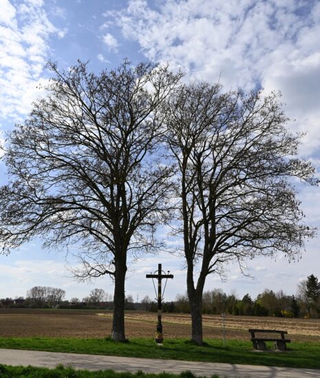 Im zweiten Grünring zwischen Haunwöhr und Hundszell finden sich zwei Berg-Ahorne. Auf der Karte dort: laufen.freudig.beutel. Sie tragen gemeinsam die Nummer 42. Zwischen ihnen steht ein 1948 von Blasius Wagner errichtetes und 1978 erneuertes Feldkreuz. Ich war am 05. April 2025 vor Ort. Freude an Ingolstädter Naturdenkmälern? Hier finden sich alle. (42) ᐊ Naturdenkmäler in Ingolstadt ᐅ (44)Weiter Lesen